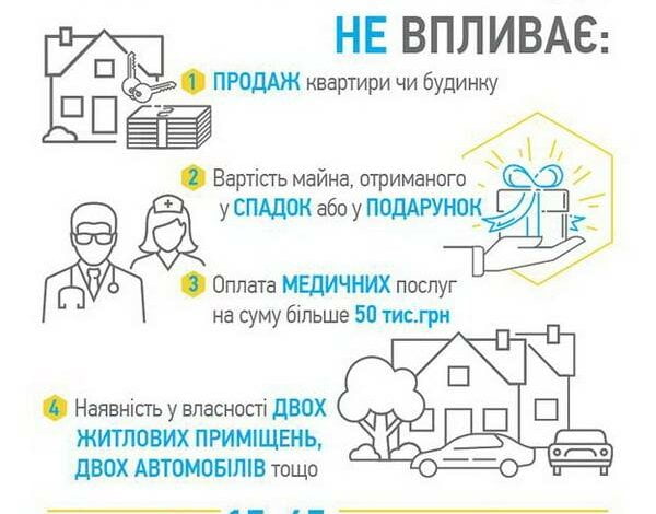 На оформлення субсидії також НЕ впливає вартість майна, отриманого у спадок або у подарунок. Цей дохід НЕ включається до сукупного доходу сім’ї і НЕ береться до уваги при розрахунку розміру субсидії.