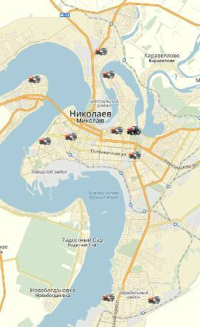 На официальной странице ЭЛУ опубликовало карту, на которой видно 10 единиц техники, работающих на автодорогах города. В том числе 2 машины «солят» дороги Корабельного района.