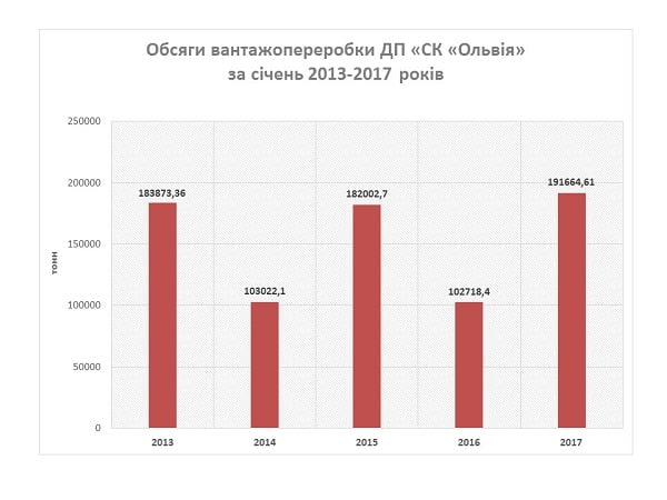 У порівнянні з січнем 2016 р. обсяг вантажопереробки ДП «СК «Ольвія» збільшився на 86,6%, тобто на 89 тис. тонн, — повідомили на підприємстві.