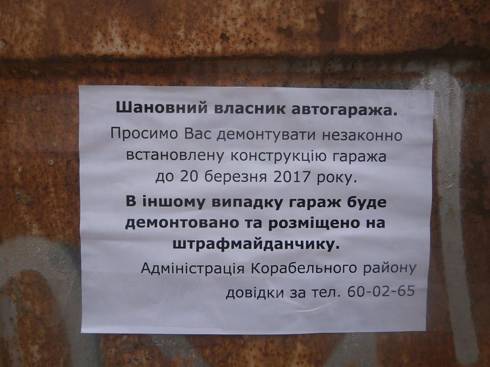 В Корабельном районе Николаева администрация взялась за демонтаж незаконных гаражей. По крайней мере одного — так точно.