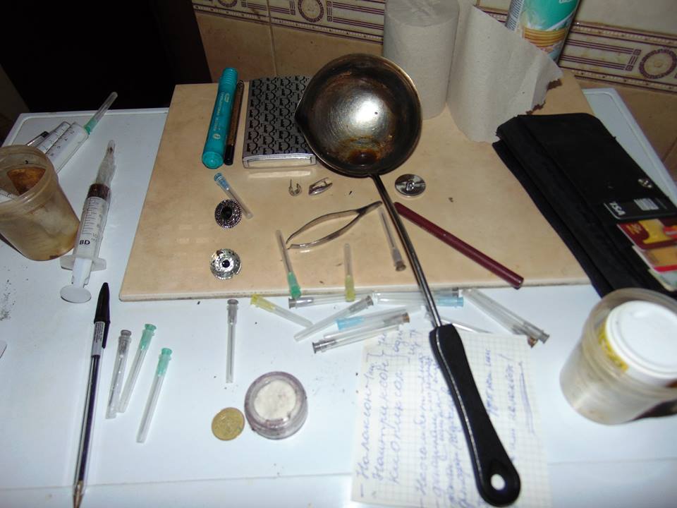 У ході санкціонованих обшуків за місцем мешкання затриманих вилучено велику кількість наркотичних засобів: опій ацетильований, ангідрид, димедрол, медичні шприці, грошові кошти у сумі понад 7 тис грн та інші речові докази протиправних діянь.