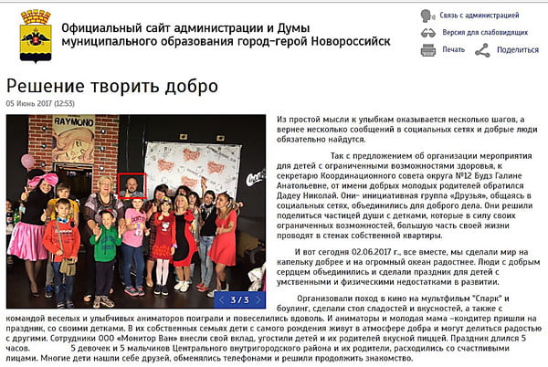 Также об акциях инициативной группы писал и официальный сайт мэрии Новороссийска, где упоминается Николай Дадеу, а также размещены фотографии, на которых он запечатлен в окружении детей. Также якобы сообщается, что местный органы власти помогали Дадеу, но на данный момент местная пресса не может получить комментарий от местных чиновников о деятельности Николая Дадеу.