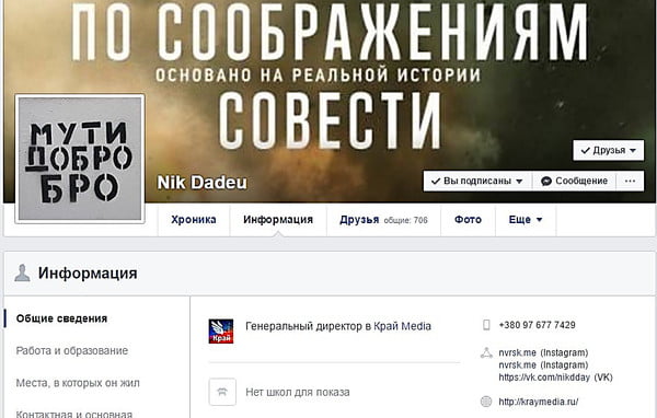 Согласно информации на странице Дадеу в соцсети, он является генеральным директором «Край Media», которая занимается рекламой на сайтах, в соцсетях, и видео-, фотосъемкой, а также связан с деятельностью сайта «Я:Новороссийск».
