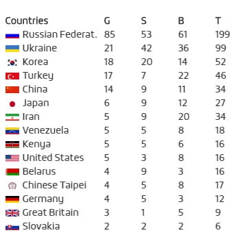 В течение 13 дней спортсмены сборной Украины завоевали 99 наград: 21 золотую, 42 серебряные и 36 бронзовых медалей, заняв второе общекомандное место среди 90 стран-участниц.