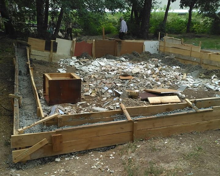 А вечером того же дня, 14 августа, можно было наблюдать на указанном месте совсем другую картину, чем пару дней назад: по периметру выкопанного фундамента уже стояла опалубка.