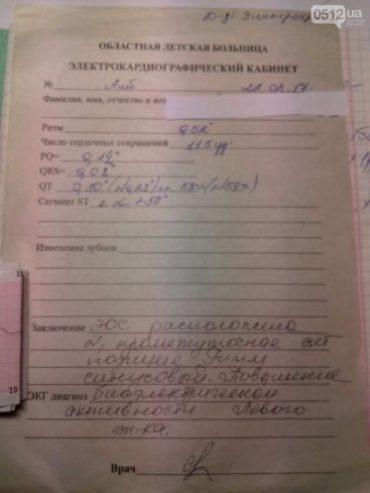После проведенных анализов, врачи констатировали, что состояние ребенка удовлетворительное, но все же кардиограмма показала нарушения. Необходим контроль, так как может проявиться аритмия.