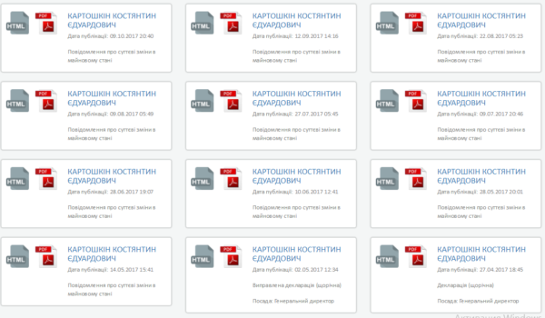 Так, каждый месяц Картошкин вносит в свою электронную декларацию изменения, где указывает свою зарплату, так как каждая из них превышает сумму, размером 50 прожиточных минимумов. Исходя из этого, ежемесячно он получает выплату в 123905 гривен, а кроме неё он получает надбавки, к слову, очень внушительные. Согласно данным из единого госреестра, в июле депутат заработал более 1 миллиона 914 тысяч гривен, а в сентябре, в отличии от других месяцев, была одна проплата – чуть больше 650 тысяч гривен.