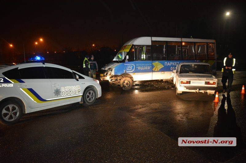 Вечером в субботу, 18 ноября, на пересечении проспекта Богоявленского (бывшего пр. Октябрьского) и ул. Торговой в Николаеве столкнулись маршрутное такси второго маршрута «Рута» и легковой автомобиль ВАЗ-2106 «Жигули», — сообщает Новости-Н.