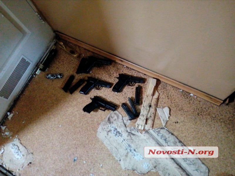 С места происшествия изъяты помповое ружье, заряженное патронами с резиновыми пулями, ножи и четыре пистолета, по предварительным данным, травматического действия. Изъятое оружие и гильзы направлены на экспертизу.