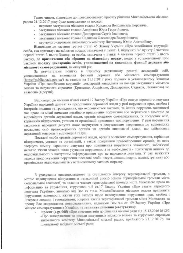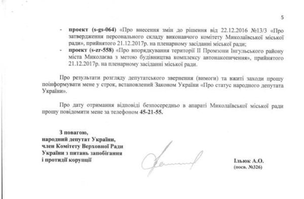 Глава Николаевской областной организации партии «Відродження», народный депутат Артем Ильюк зарегистрировал обращение-требование к временно исполняющей обязанности Николаевского городского головы Татьяне Казаковой, в котором указал на нарушения закона и регламента, в частности, при вчерашнем утверждении заместителей городского головы и членов исполкома, а также решении одного из земельных воопросов.