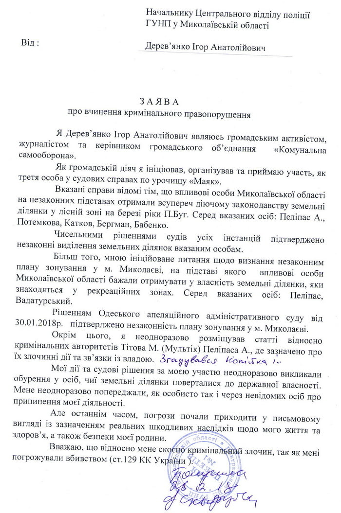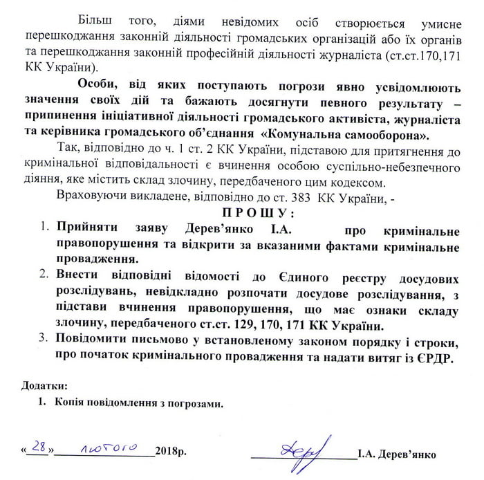В цей раз я звернувся з відповідною заявою до правоохоронних органів.