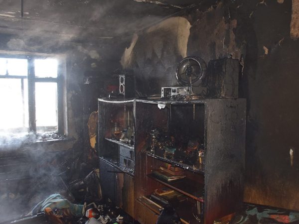 В помешканні спостерігалося полум’яне горіння та щільне задимлення, яке почало розповсюджуватися на сходову клітину.