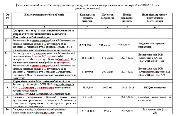 По объектам в Корабельном районе внесены изменения в Программу соцэкономразвития города Николаева на 2018 - 2020 годы