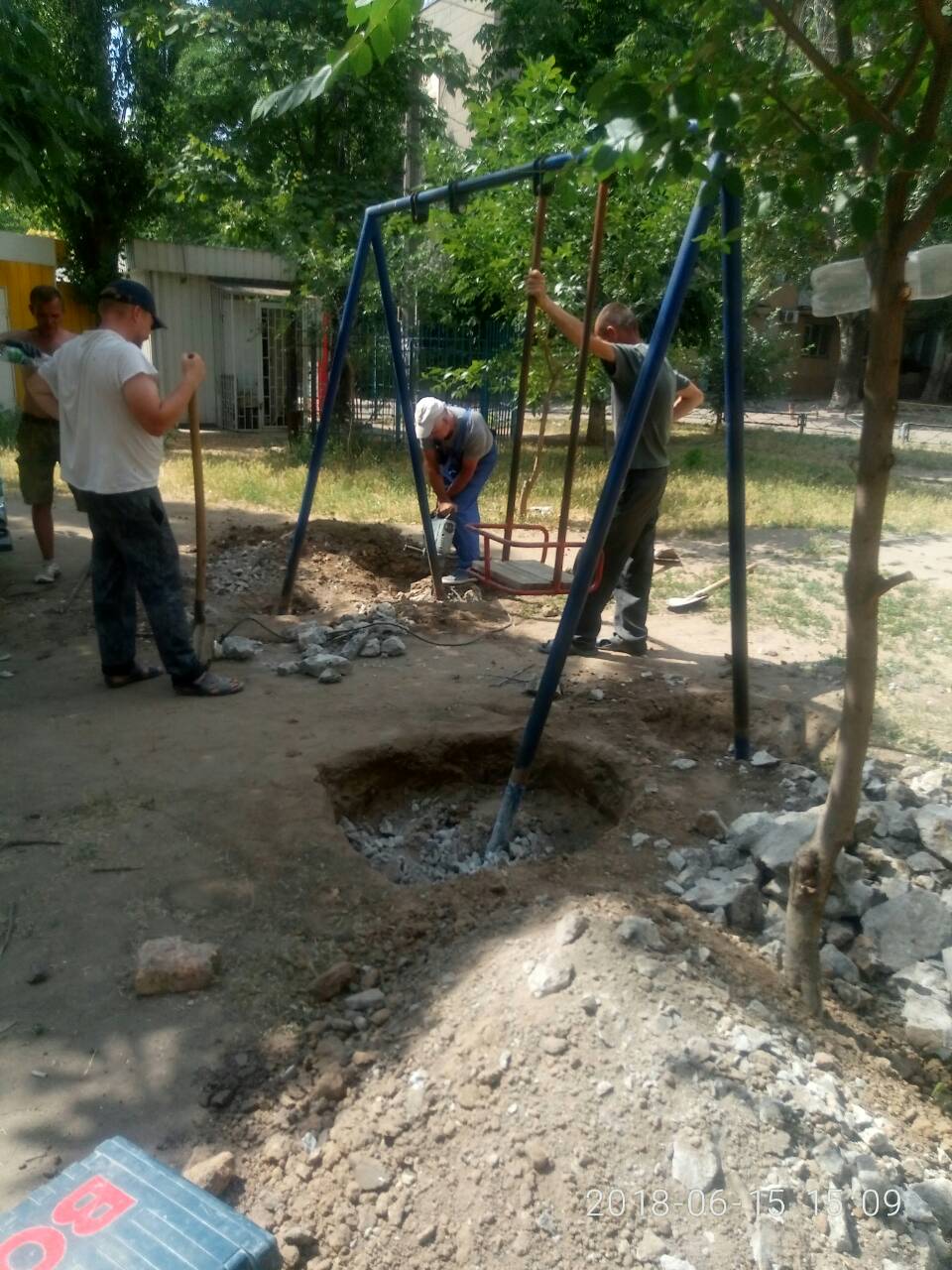 Жители так называемого «глиноземовского» общежития, расположенного в Корабельном районе города Николаева по пр. Богоявленскому, 340/1, бьют тревогу: вчера, 15 июня, во дворе перед их домом на глазах у возмущенных жильцов демонтировали элементы детской площадки, пояснив, что забирают их якобы «на ремонт».