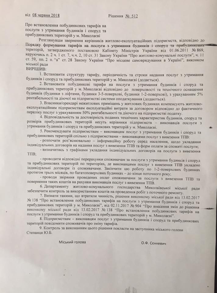 Пока николаецы отходят от шока, связанного с поднятием тарифа на городские пассажирские перевозки, уже в начале июня, мэр, тихо и незаметно для горожан протащил через исполком Николаевского горсовета решение №512 от 8.06.2018 года — подняв тариф на квартплату.