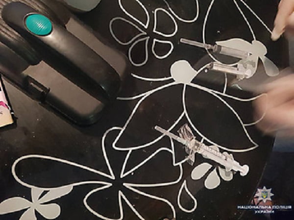 Полиция провела ряд обысков – в автомобилях и по месту жительства подозреваемых, во время которых обнаружили и изъяли около 150 мл опия, 150 мл ангидрида уксусной кислоты (прекурсор), шприцы с остатками наркотиков и другие принадлежности для изготовления опия.