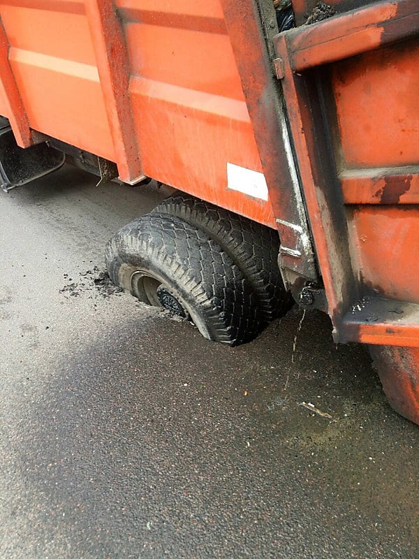 "Третий пошел": в Корабельном районе снова под мусоровозом провалился асфальт