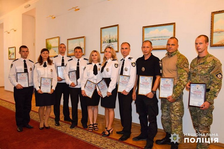 Так, були нагороджені: головний спеціаліст відділу психологічного забезпечення підполковник поліції Світлана Нємцева, начальник відділу Управління інформаційно-аналітичної підтримки підполковник поліції Олег Піскурьов, начальник міжрайонного сектору УПН майор поліції Сергій Володін, старший інспектор відділу Управління превентивної діяльності майор поліції Олександр Козловець, старший інспектор Управління КОРД майор поліції Віталій Мурза, начальник сектору Очаківського відділу поліції майор поліції Сніжана Ольшанська, старший слідчий Слідчого управління майор поліції Алла Шмарко, оперуповноважений УКР капітан поліції Анатолій Зімов, поліцейський РПОП старший сержант Олександр Поляков, поліцейський РПСПОП «Миколаїв» сержант поліції Станіслав Покрас.