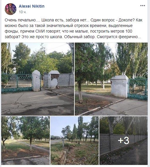 «Очень печально… Школа есть, забора нет… Один вопрос – доколе? Как можно было за такой значительный отрезок времени, выделенные фонды, причем СМИ говорят, что немалые, построить метров 100 забора? Это же просто школа. Обычный забор. Смотрится феерично…», — написал он.
