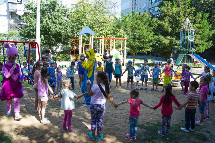 Кроме торжественного открытия площадки, деток ждала праздничная программа с любимыми героями из мультфильмов. Детвора также не осталась без вкусных подарков, а вместе с ними — незабываемыми впечатлениями от праздника и радостью от новой игровой площадки.