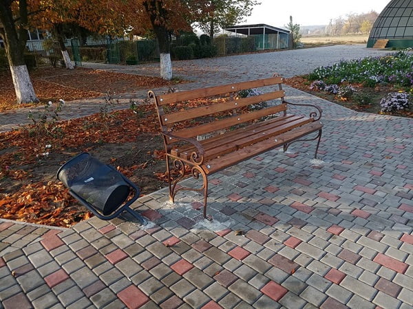 Цими вихідними в селі Галицинове Вітовського району Миколаївської області хулігани розгромили новий парк – всього було зламано три смітники, а також вирвано квіти.