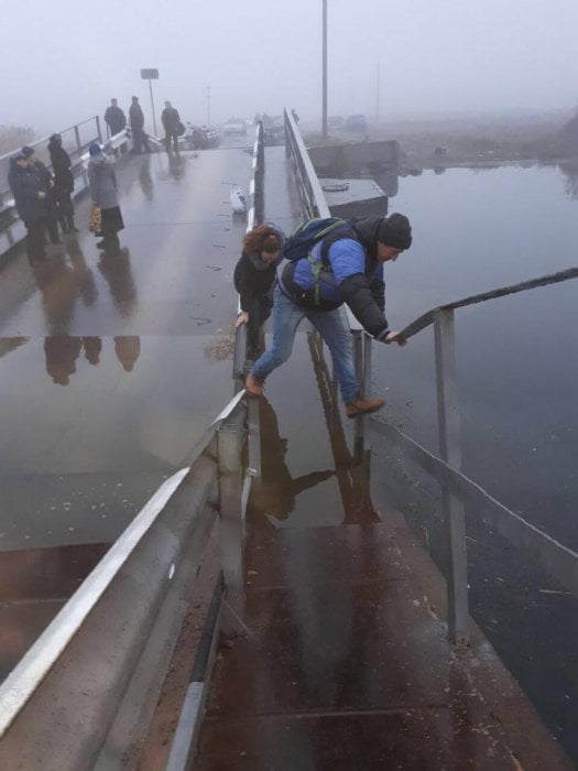По информации активистов в ночь с 26 на 27 ноября 2018, из-за пренебрежения дорожными знаками об ограничении проезда тяжеловесных транспортных средств, был осуществлен переезд по указанному мостовому переходу транспортным средством, весовые параметры которого превышает допустимые нормы. В результате чего были затоплены два понтона мостового перехода в селе Пересадовка Витовского района, которые раньше были в удовлетворительном состоянии и не нуждались в ремонте.