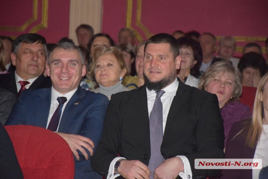 Чтобы поздравить работников самоуправления на концерт прибыли глава Николаевской ОГА Алексей Савченко, глава облсовета Виктория Москаленко и градоначальник Николаева Александр Сенкевич.