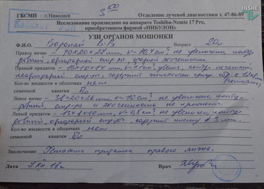 В тот же день Владимир Воропай написал заявление во второй отдел Николаевского теруправления ГБР, который расследует преступления, совершенные сотрудниками правоохранительных органов, а также зафиксировал побои в Николаевской СМЭ.