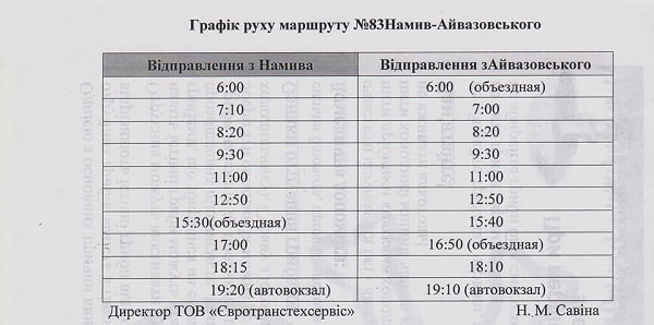Управление транспорта Николаевского городского совета в комментарии к сообщению предоставило расписание работы маршрута № 83: