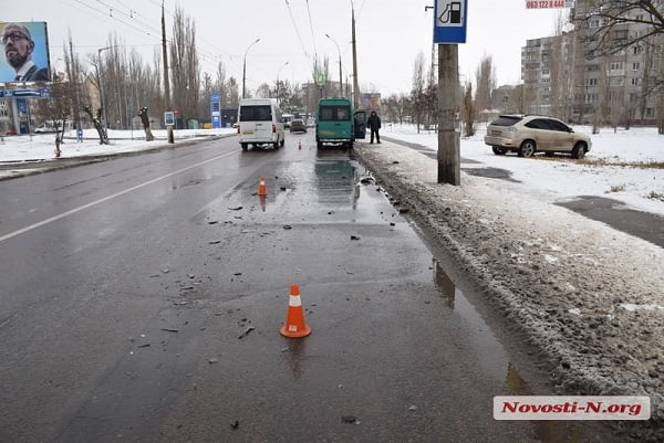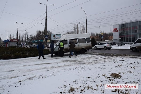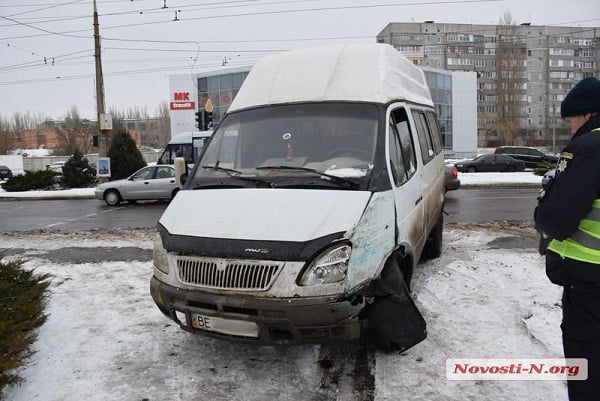 Днем в среду, 23 января, на улице Генерала Карпенко в Николаеве столкнулись микроавтобус «Газель» и маршрутка 75-го маршрута Mercedes Sprinter.
