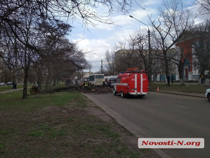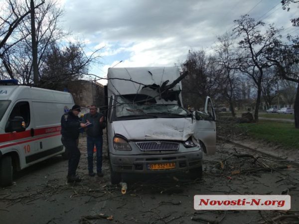 Днем в понедельник, 11 марта, в Николаеве из-за сильных порывов ветра на двигавшуюся маршрутку упало дерево, — сообщают Новости-Н.