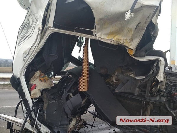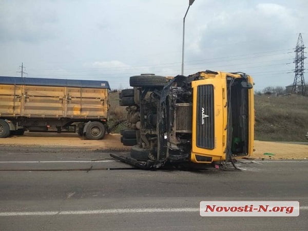 Оба автомобиля ехали по трассе со стороны трассы «Николаев-Ульяновка», в направлении Херсона. Возле села Зайчевское водитель «Скании» притормозил и начал поворачивать налево, на заправку WOG. Именно в этот момент по встречной полосе его начал обгонять двигавшийся в попутном направлении «МАЗ». В результате «МАЗ» на полном ходу врезался прямо в кабину «Скании», полностью разворотив ее. После этого «МАЗ» проехал около 100 метров вперед и перевернулся. Зерно, которое перевозил автомобиль, рассыпалось по дороге.
