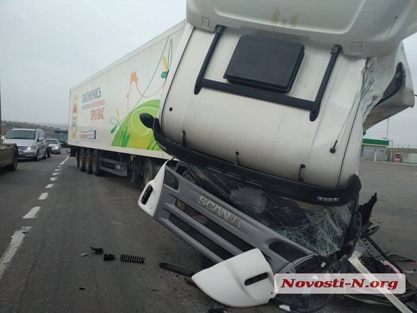 Утром в пятницу, 22 марта, на объездной дороге под Николаевом, возле села Зайчевское Витовского района столкнулись седельный тягач Scania с полуприцепом и грузовик «МАЗ» с прицепом.