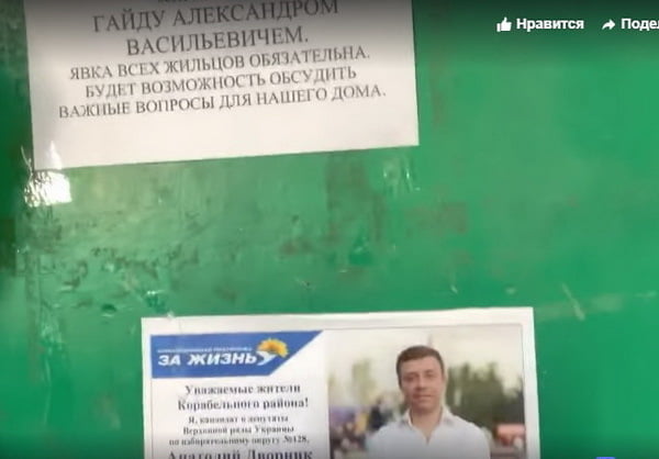Так, на 27 июня была анонсирована встреча жителей многоэтажного дома по проспекту Богоявленскому, 285 с кандидатом в народные депутаты от «Слуги народа» Александром Гайду. Оповещения о встрече с ним были расклеены на подъездах дома с пометкой об обязательной явке всех жильцов.