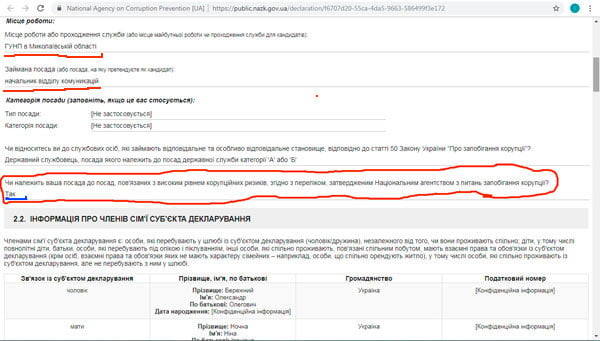 Така діяльність начальника відділу комунікації ГУ НП в Миколаївської області категорично заборонена антикорупційним законодавством і є кримінальним злочином. Відповідно до Е-декларації Бережної Олени Олександрівни, що знаходиться на сайті Національного агентства з питань запобігання корупції, вона є чиновником високого рангу та знаходиться на «посаді пов’язаній з високим рівнем корупційних ризиків»: https://public.nazk.gov.ua/declaration/f6707d20-55ca-4da5-9663-586499f3e172