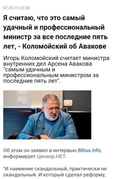 Чи може тут цілеспрямовані дії МВС? Недаремно ж Коломойський називав Авакова «самим удачним і профєсіональним міністром» та «виступіл за сохранєніє Авакова в новом правітєльствє»: