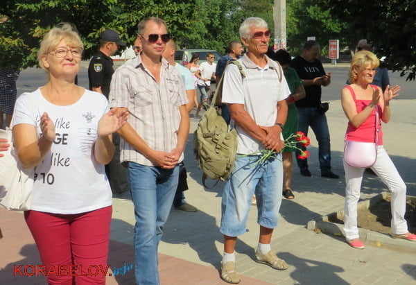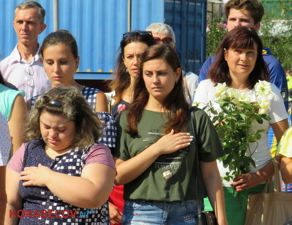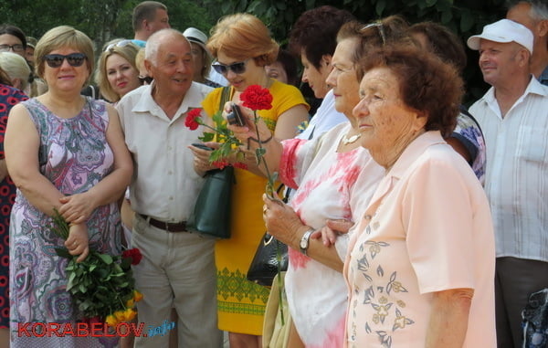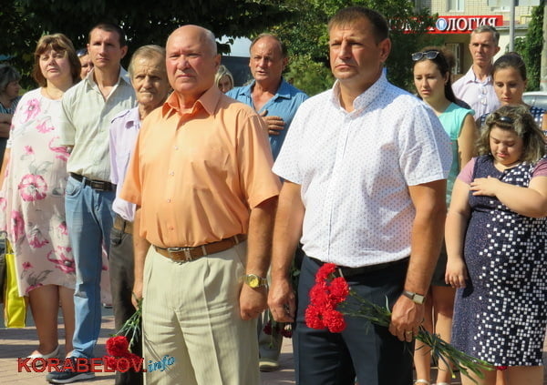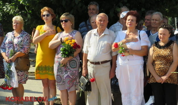Мы очень гордимся нашим флагом. Уважение к флагу — это уважение к своему народу и его традициям. Пусть он гордо греет (скорее всего, имелось в виду «реет» — прим. ред.) на ветру и вселяет в души, в нас, патриотизм и уверенность в завтрашнем дне. Желаю всем нам счастья, благополучия, уверенности в завтрашнем дне. Мира нам и нашему государству! С праздником вас!», — привітав зі святом жителів та гостей Корабельного району перший заступник голови райадміністрації Олександр Гвозденко.
