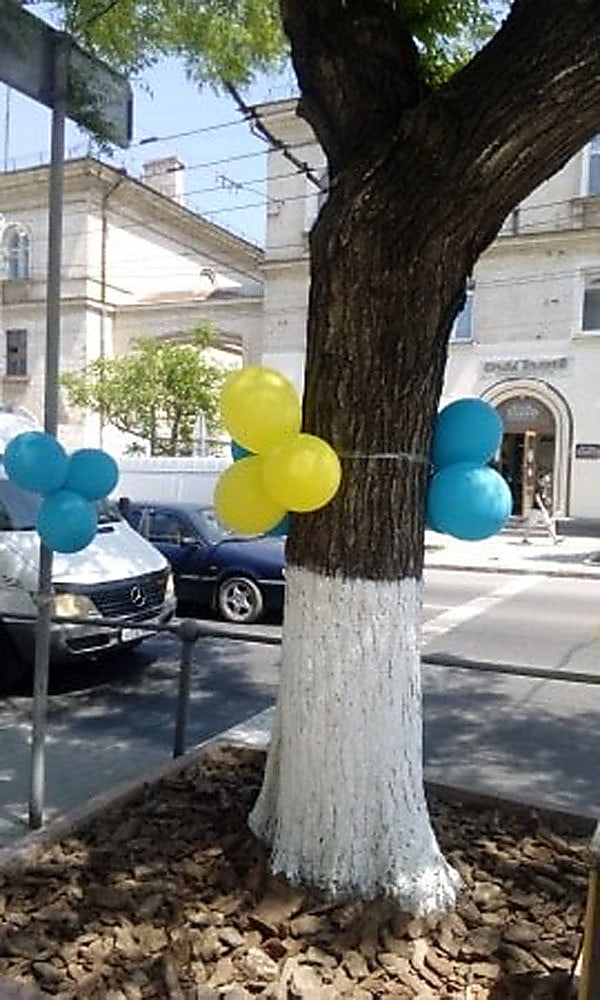 Тем временем в Twitter появилось новое фото — из аннексированного Севастополя. Там воздушные шарики в цветах украинского флага прикрепили к дереву в центре города. Об этом сообщает «Факты».