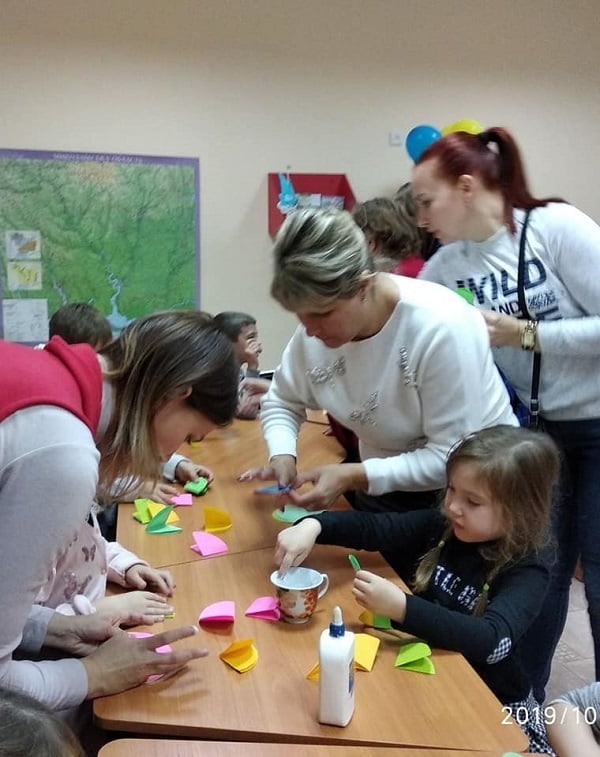 Саме цей вірш надихнув Лілію влаштувати майстер-клас по виготовленню кольорових парасольок з кольорового паперу, які вийшли пречудово завдяки допомозі всіх дорослих, що прийшли на захід.