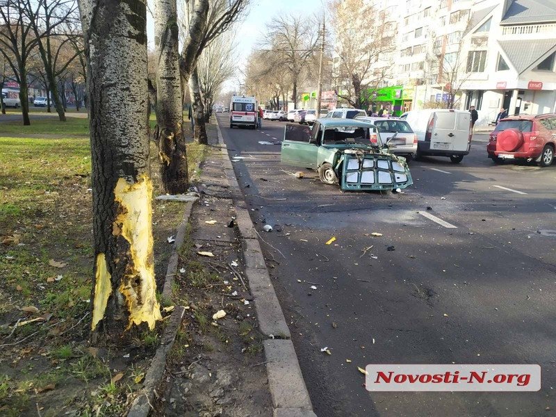 Утром в четверг, 28 ноября, на проспекте Центральном в Николаеве автомобиль ВАЗ 2107 на высокой скорости врезался в два дерева, после чего отлетел в автомобиль «Ауди А6».