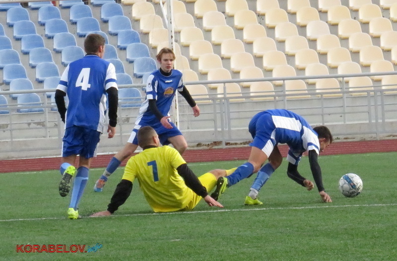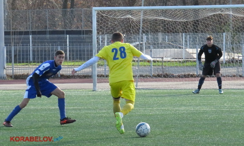 Хоч і настала вже зима, на полі відчувалась справжня палка боротьба за перемогу. Гра розпочалась дуже вдало для «портовиків»: ініціативність та згуртованість спонукали проводити ряд атак біля воріт супротивника. Під час одного з таких моментів (на четвертій хвилині матчу), після фолу відкрив рахунок з пенальті Віктор Ходоровський, забивши гол у ворота СДЮСШОР «Миколаїв U18».