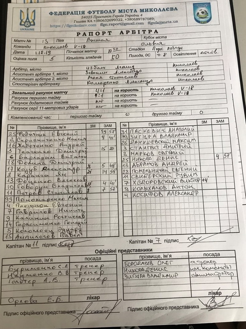 Остаточний результат матчу — 4:1 на користь «СДЮСШОР Миколаїв U18».