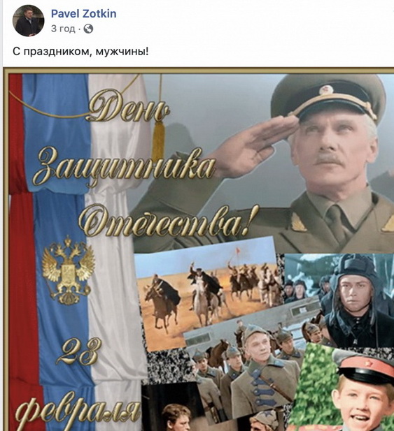 Народный депутат от «Слуги народа» Виталий Безгин написал заявление в СБУ и Генеральную прокуратуру на депутата Николаевского городского совета от фракции «Оппозиционный блок» Павла Зоткина, который выставил поздравление с 23 февраля, прикрепив к нему картинку с флагом Российской Федерации.