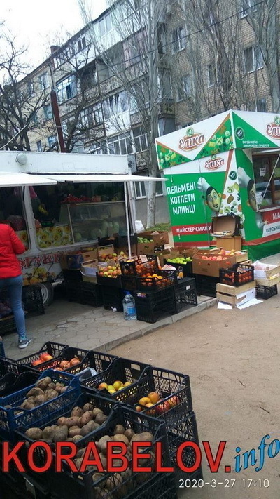 Что касается стихийной торговли, то она не обнаружена в наиболее привычных местах, которые всем известны (аллеи возле школы №33, возле рынка “Коралл”, площадь перед «АТБ» возле рынка “Феникс”), зато «стихийщики» облюбовали новые позиции. Например, активно продавали овощи и фрукты на так называемом “пятаке” (у пересечения проспектов Богоявленского и Корабелов), а также возле остановки «Корабелов» (напротив школы №54).