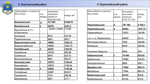 «Так конфигурацией нового административно территориального устройства субрегионального уровня Николаевщины предусмотрено создание четырех районов — Николаевского, Вознесенского, Первомайского и Баштанского в составе новых общин, которые предусмотрены в перспективном плане, который находится на рассмотрении КМУ. Эта позиция была поддержана на совещании и совпала с позицией большинства экспертов», — говорится в сообщении.