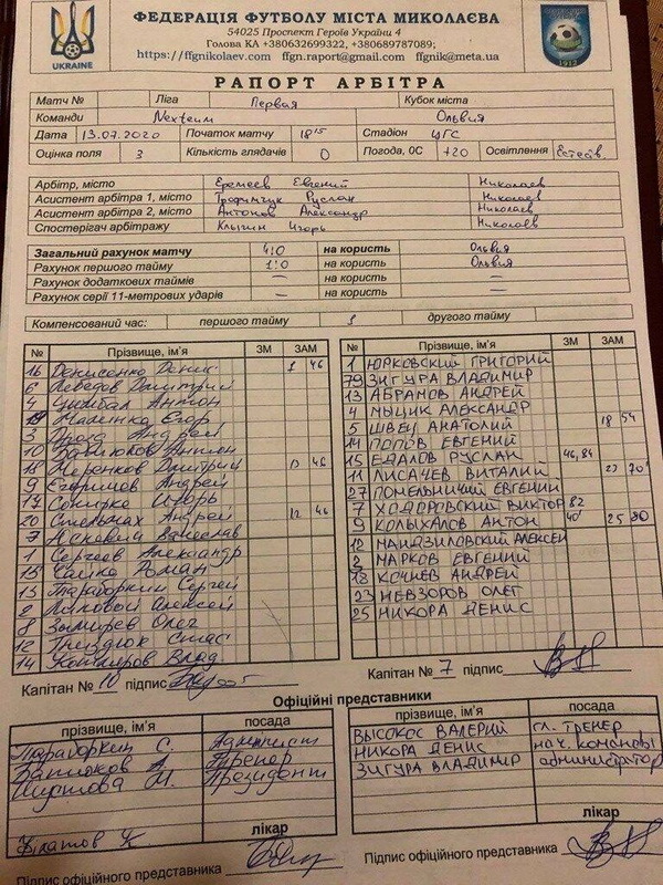 У понеділок, 13 липня, в рамках літнього чемпіонату Миколаєва з футболу, на Центральному міському стадіоні відбувся матч між командами першої ліги «Ольвія» та «Nexteum».