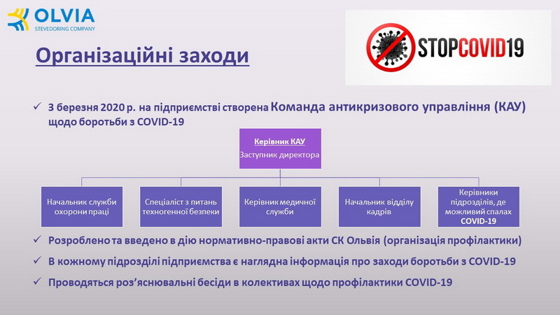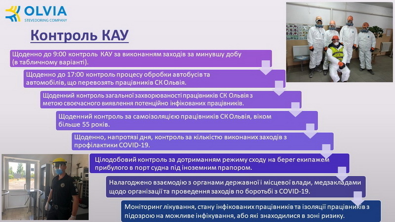 «Компанією QTerminals високо оцінено проведену координаційною групою ДП «СК «Ольвія» роботу щодо запобігання розповсюдженню COVID-19 на підприємстві та піклування про безпеку та здоров’я своїх працівників.