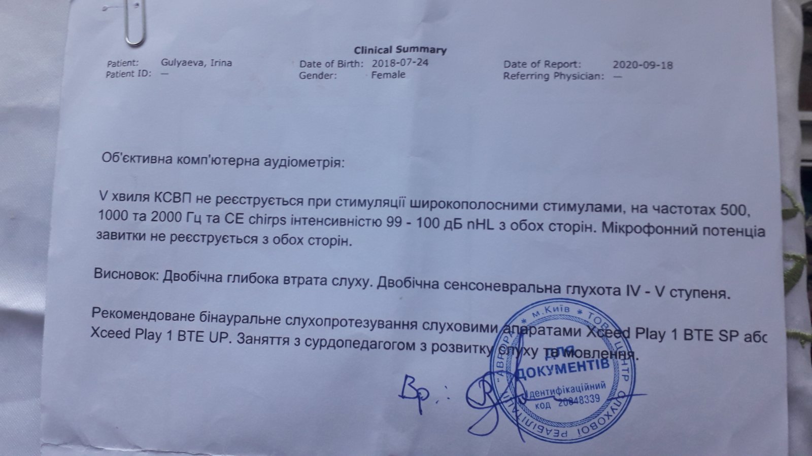 У нашей Доченьки двухсторонняя сенсоневральная глухота 4 степени.