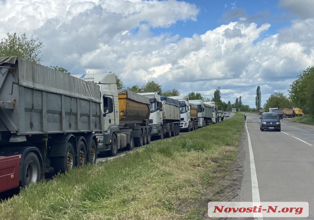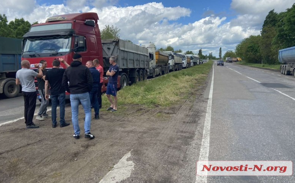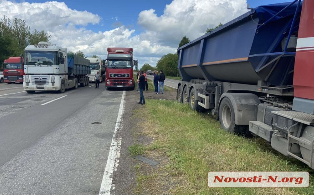 Водители большегрузных автомобилей под Николаевом заблокировали трассу госзначения