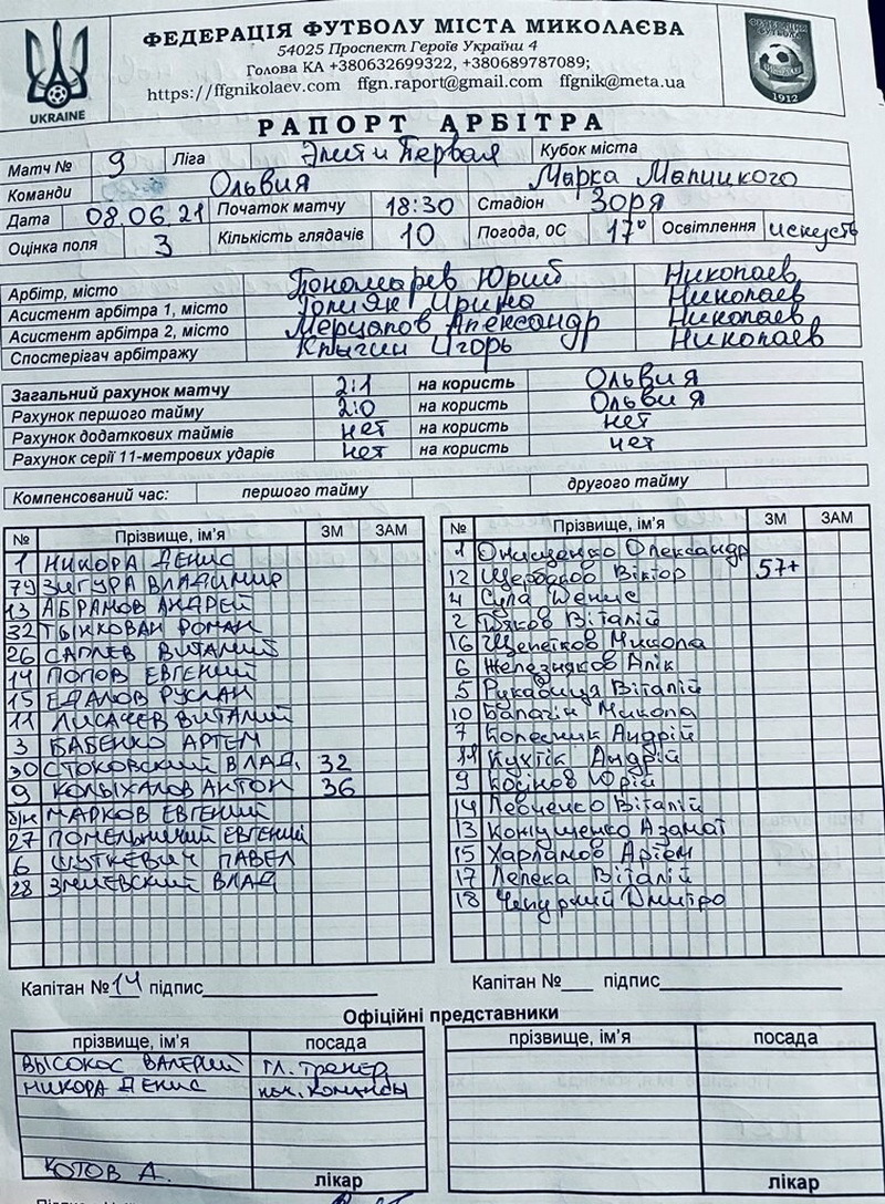 Остаточний результат матчу — 2:1 на користь «Ольвії».